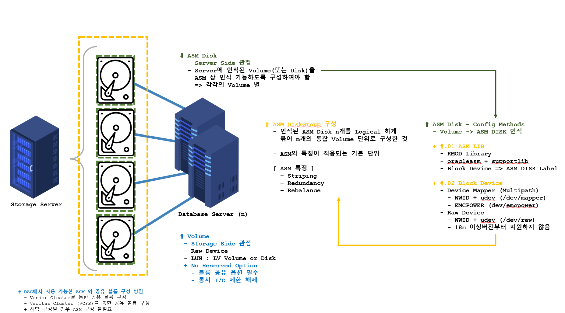 - ASM 상에서 관리되는 공유 볼륨은 ASM Diskgroup 단위로 분류됨