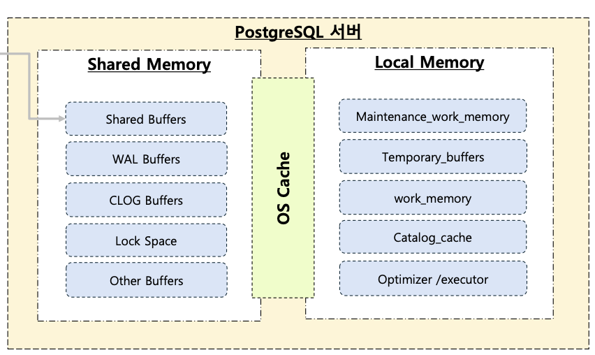 - Shared Memory는 Client의 요청으로 생성된 모든 Backend 프로세스에 의해 공유되는 영역