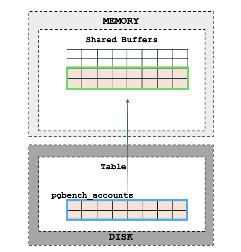 - Shared Buffers에 데이터 존재 X, 디스크에 있는 테이블로 부터 데이터 Read,