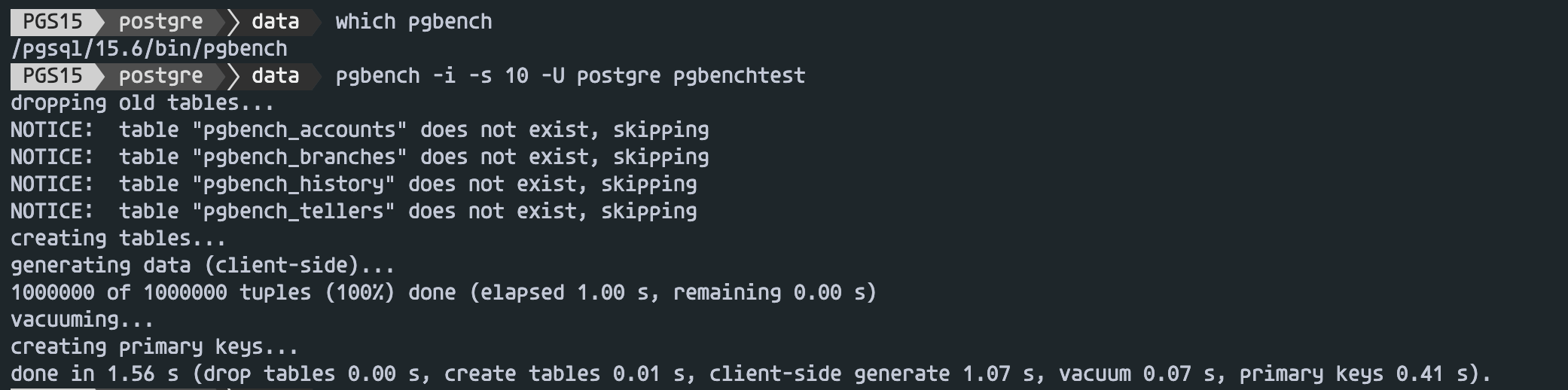 # pgbench 통한 Instance workload 수행 which pgbench pgbench -i -s 10 -U postgre pgbenchtest