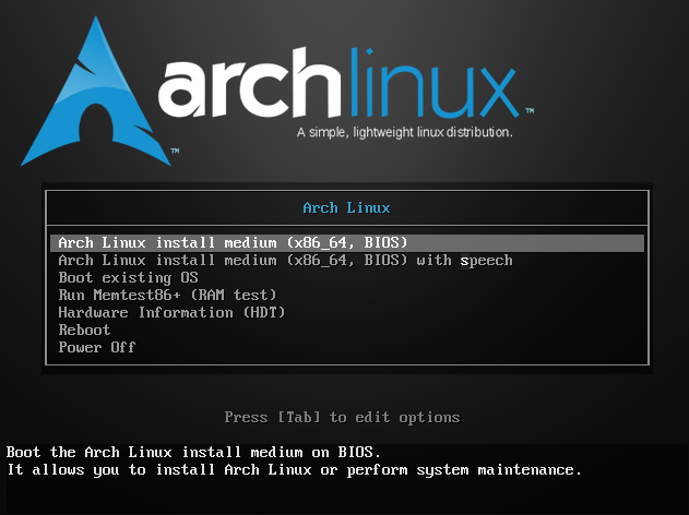 - https://archlinux.org/download/ ⇒ archlinux-YYYY.MM.DD-x86_64.iso