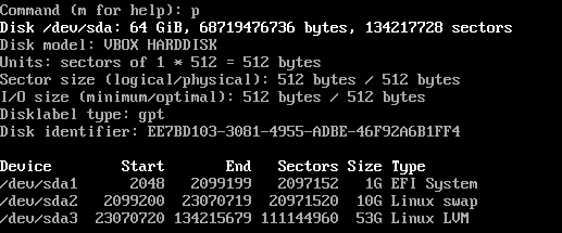 # >> root 옵션 PN : 2 | FS : Enter | LS : Enter | t + 2 + Enter + 44 (LVM)