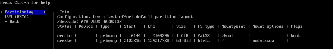 # Disk Configuration => Partitioning == besst-effort default 옵션